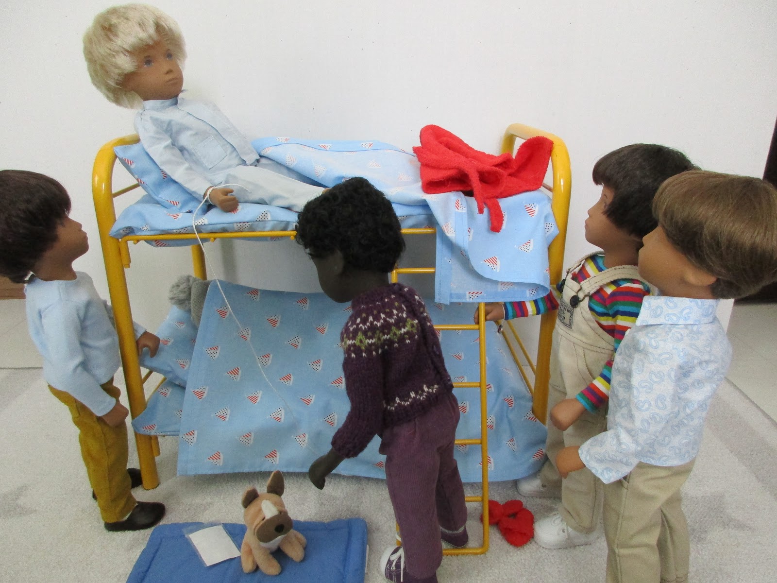 The wig turned out to be a big success and far exceeded my expectations. It fits quite snug so there's no chance of it going askew, which is surprising considering he's a bit smaller than my PG boy Robin. The wig hides all of the rooting holes, and I think the light brown color really suits him. It's always nice to find a simple, easy solution to a problem.