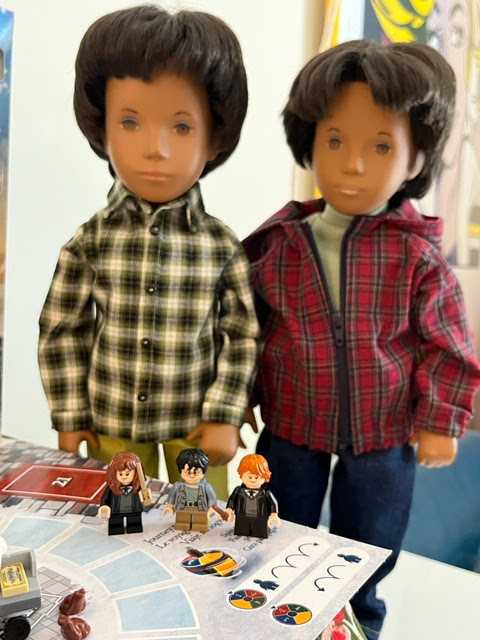 Serena, Louisette, Kurt, and Nicholas Sahara are admiring the calendar and are playing the 'Journey to Hogwarts' game that was a bonus to the calendar.